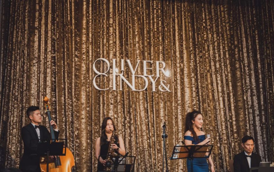 本來跟夫君希望有個最簡單的婚禮,但沒想到父親決定請音樂團隊讓現場更有氣氛。我的最佳新秘Summer推薦了享樂音樂團隊,我看了youtube上的表演影片就立刻與他們溝通歌單,我還私心的點9m88的歌,連夫君都告訴我要不要上台跳舞(但沒喝醉我也不太敢)